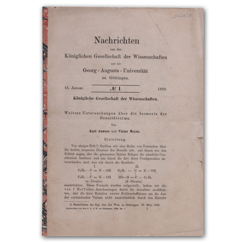 Weitere Untersuchungen über die Isomerie der Benzildioxime. 24 S. In: Nachrichten von der Königlichen Gesellschaft der Wissenschaften... zu Göttingen. No. 1.