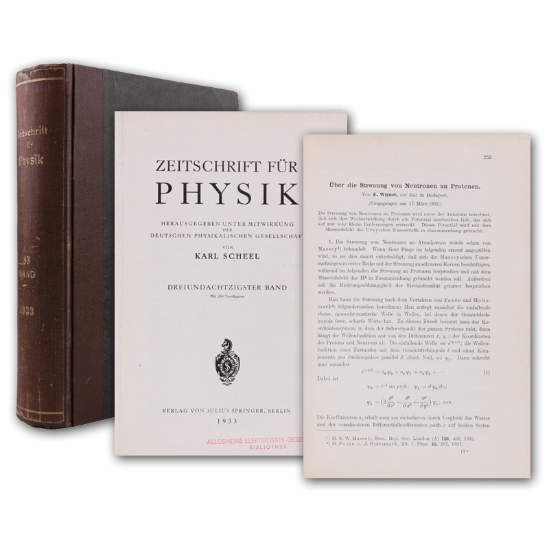 Über die Streuung von Neutronen an Protonen. SS. 253-258. - Und: G. (Herta) Pöschl und E(dward) Teller. Bemerkungen zur Quantenmechanik des anharmonischen Oszillators. SS. 143-151. - Und: G(uido) Beck. Hat das negative Energiespektrum einen Einfluß auf Kernphänomene? SS. 498-511. In: Zeitschrift für Physik. Band 83.