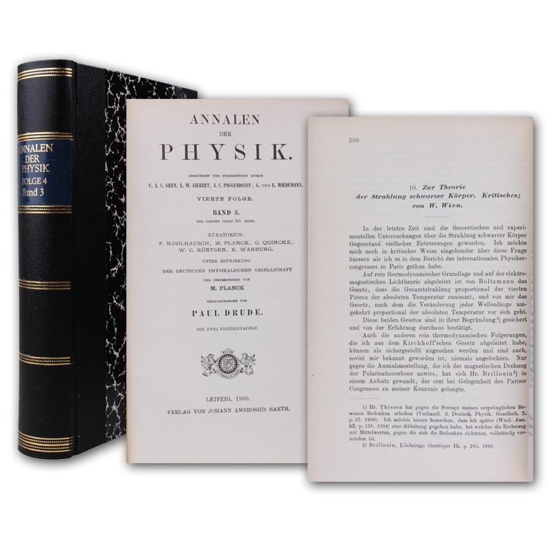 Zur Theorie der Strahlung schwarzer Körper. Kritisches. SS. 530-539. - Und: Max Planck. Kritik zweier Sätze des Hrn. W. Wien. SS. 764-766. In: Annalen der Physik. Vierte Folge. Band 3.