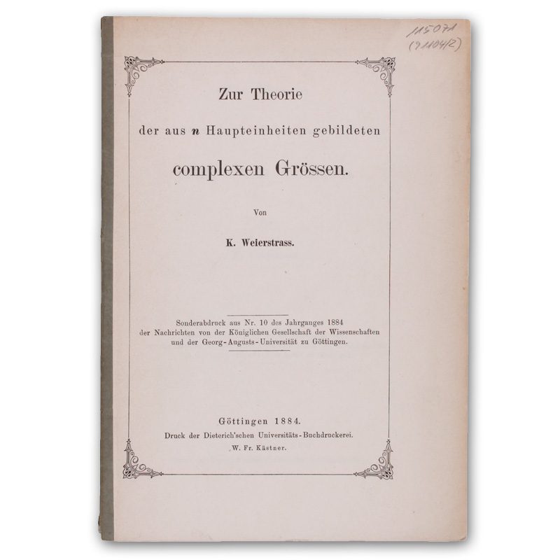Zur Theorie der aus n Haupteinheiten gebildeten complexen Grössen.