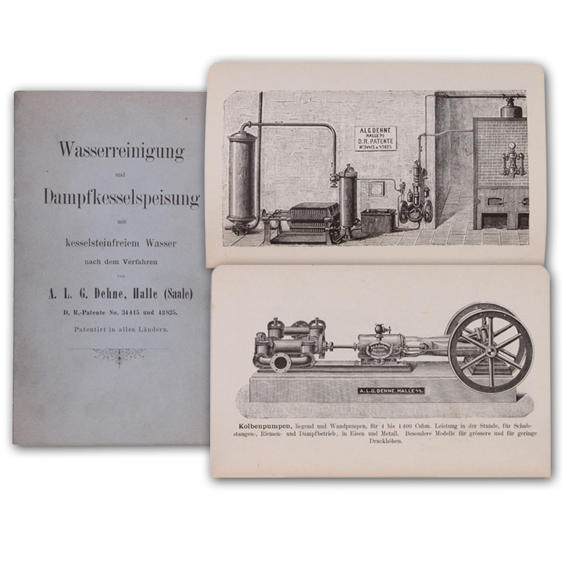Wasserreinigung und Dampfkesselspeisung mit kesselsteinfreiem Wasser nach dem Verfahren von A.L.G. Dehne.