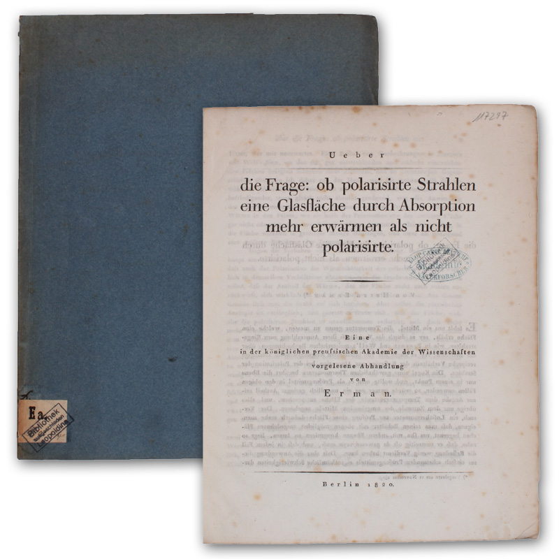Über die Frage, ob polarisirte Strahlen eine Glasfläche durch Absorption mehr erwärmen, als nicht polarisirte. Eine der kgl. preuss. Akademie der Wissenschaften vorgelesene Abhandlung.