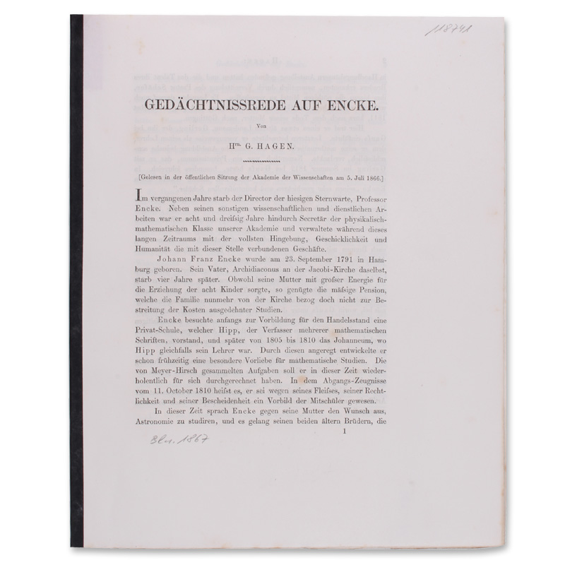 (Berlin, 1867). (28,5 x 23,5 cm). 20 S. Rückenbroschur, unbeschnitten. (Aus: Abh. der k. Akademie der Wissenschaften).