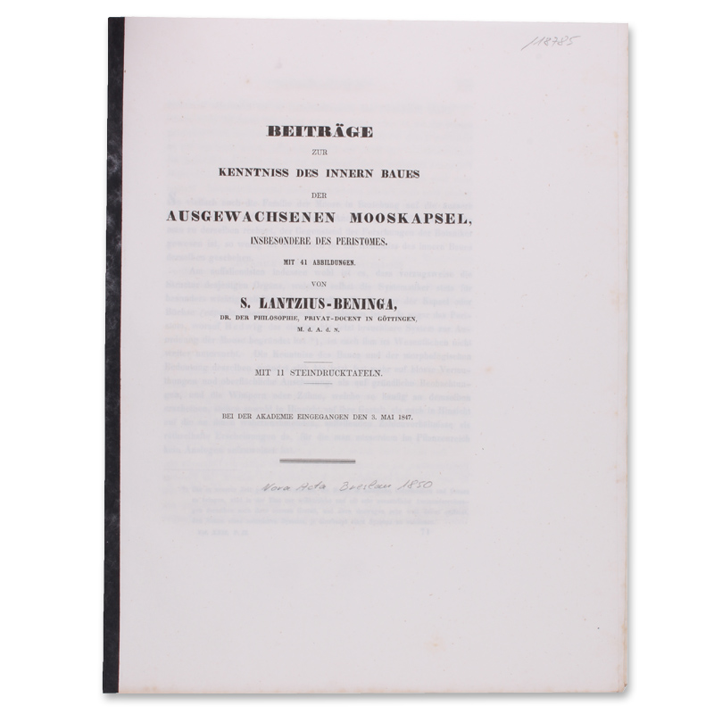 (Breslau und Bonn, Weber, 1855). (31 x 24 cm). SS. (529)-591. Rückenbroschur, unaufgeschnitten. (Aus: Nova Acta Leopoldina).