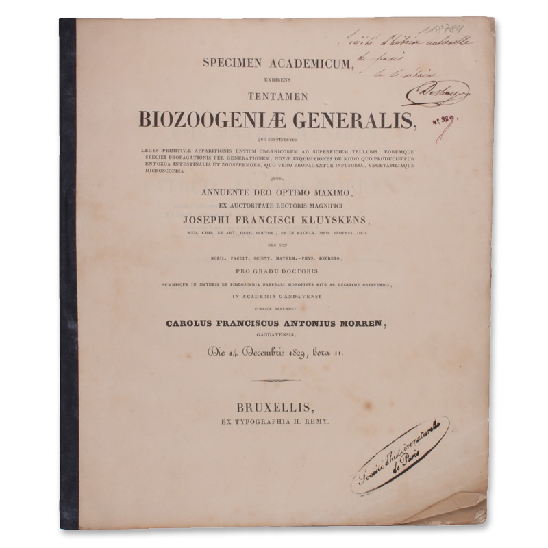 Brüssel, 1829. (24,5 x 20,5 cm). (4) 35 (2) S. Rückenbroschur.