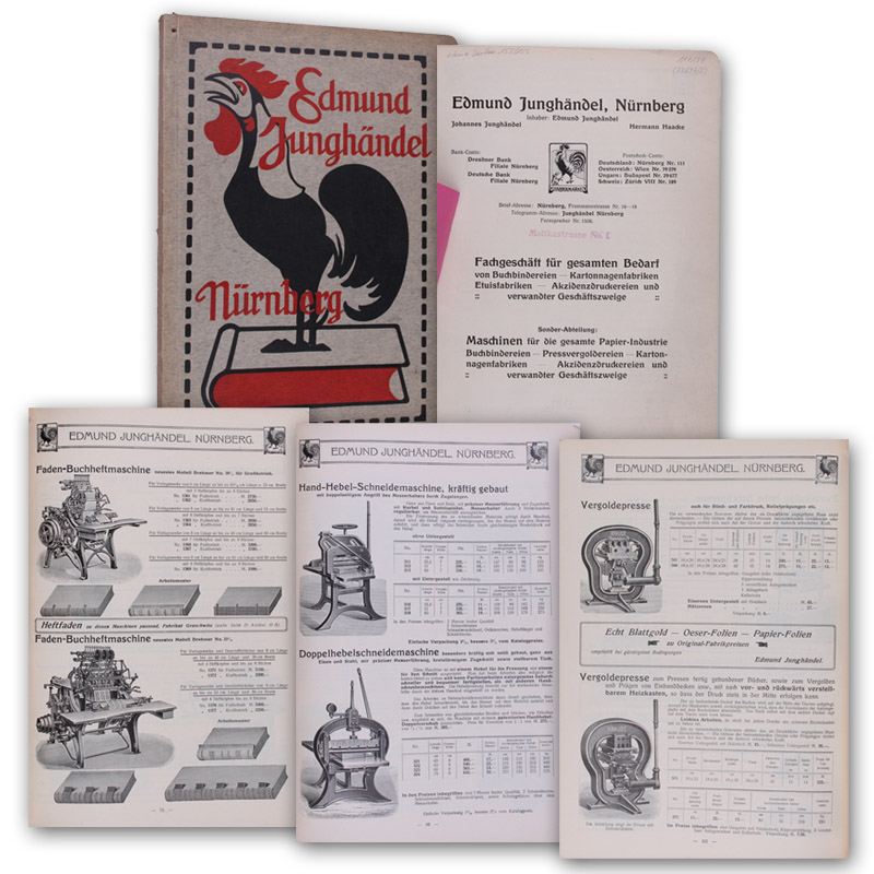 Maschinen für die gesamte Papier-Industrie - Buchbindereien - Pressvergoldereien - Kartonagenfabriken - Akzidenzdruckereien und verwandter Geschäftszweige.