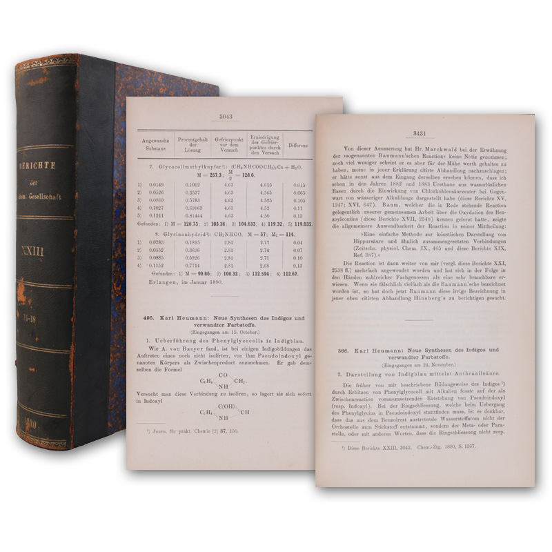 Neue Synthesen des Indigos und verwandter Farbstoffe. SS. 3043-3045 und 3431-3435. In: Berichte der deutschen chemischen Gesellschaft. Band 23, Hefte 14-18.