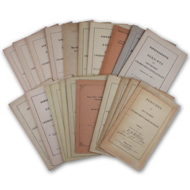 Konvolut mit 24 Sonderdrucken überwiegend aus den Berichten der Deutschen Chemischen Gesellschaft, davon 6 mit handschriftlicher Widmung des Verfassers.