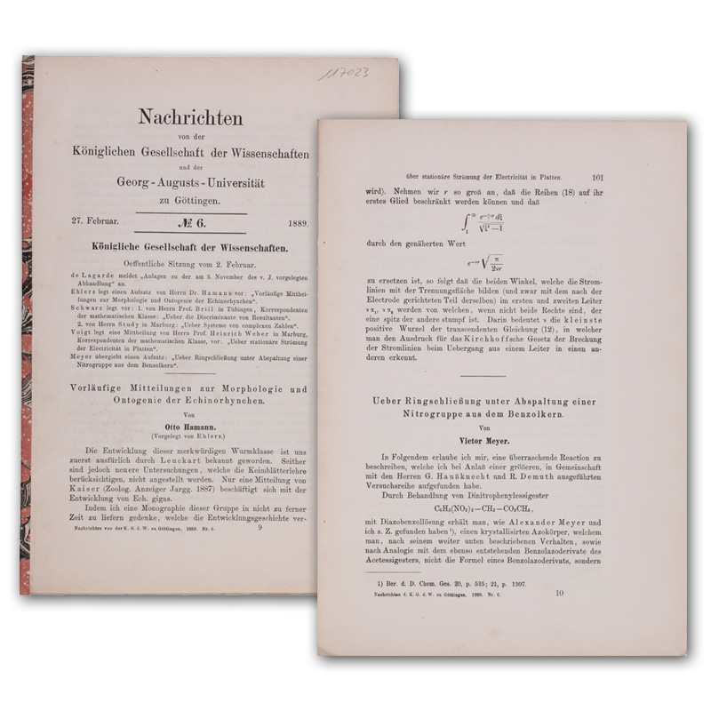 Ueber Ringschließung unter Abspaltung einer Nitrogruppe aus dem Benzolkern. SS. 101-106. In: Nachrichten von der Kgl. Ges. der Wissenschaften... zu Göttingen. No. 6.
