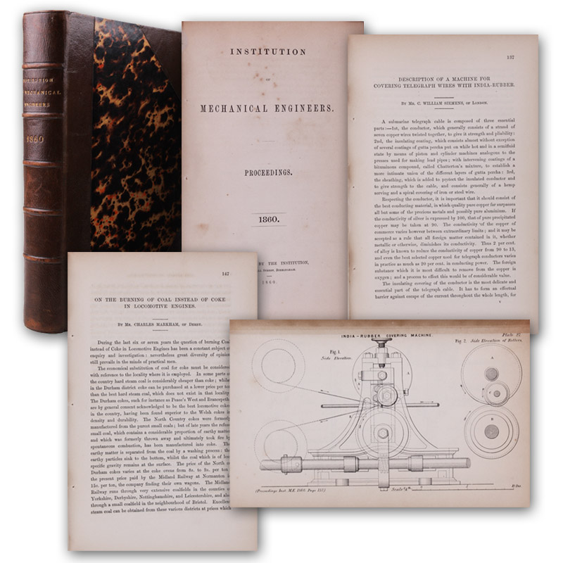 Description of a machine for covering telegraph wires with Indian-rubber. SS. 137-146. Mit 4 Tafeln. - Und: Charles Markham. On the burning of coal instead of coke in locomotive engines. SS. 147-177. Mit 5 Tafeln. In: Proceedings of the Institution of Mechanical Engineers.
