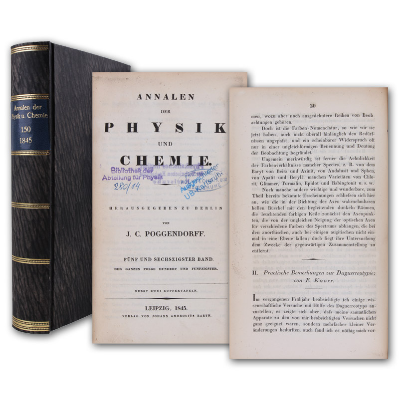 Practische Bemerkungen zur Daguerreotypie. SS. 30-69. In: Annalen der Physik und Chemie. Hrsg. J. C. Poggendorff. Band 65.