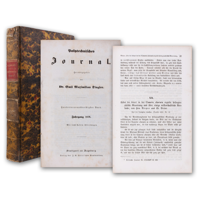 Ueber die direct in der Camera obscura erzielte heliographische Gravirung und über einige wissenschaftliche Versuche. 5 S. In: Polytechnisches Journal. Hrsg. J. G. Dingler. Band 139.