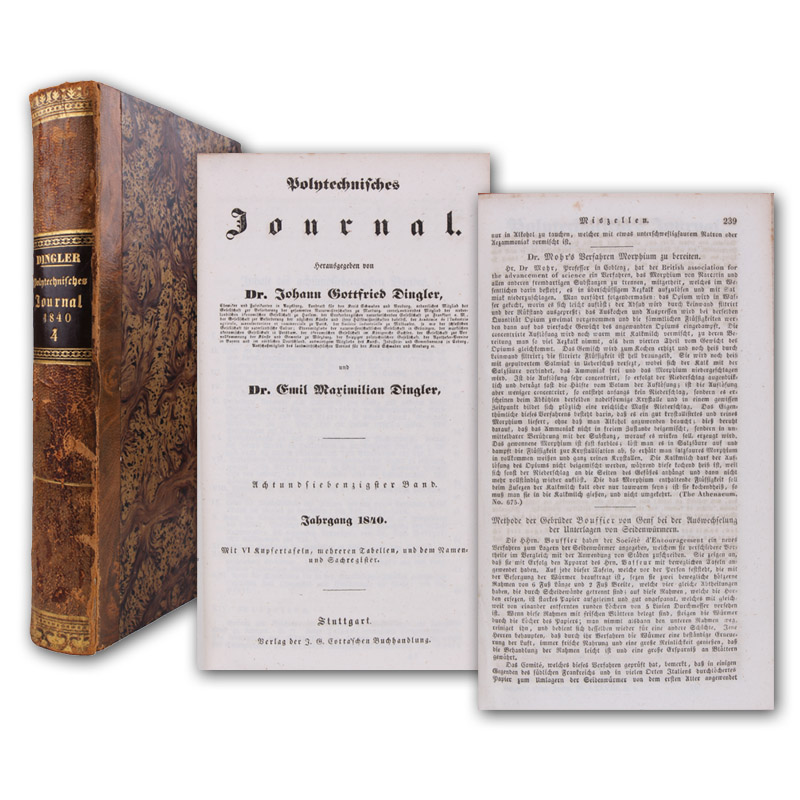 Neues Verfahren Lichtbilder zu erzeugen. SS. 238-239. - Und: Hippolyte Louis Fizeau. Ueber ein Verfahren die Lichtbilder zu fixiren. SS. 61-62. - Und: John William Drapper. Ueber die Theorie des Daguerre'schen Verfahrens Lichtbilder zu erzeugen und die Anwendung des Daguerreotyps, um von lebenden Personen Portraite zu nehmen. SS. 120-128. In: Polytechnisches Journal. Hrsg. J. G. Dingler. Band 78.
