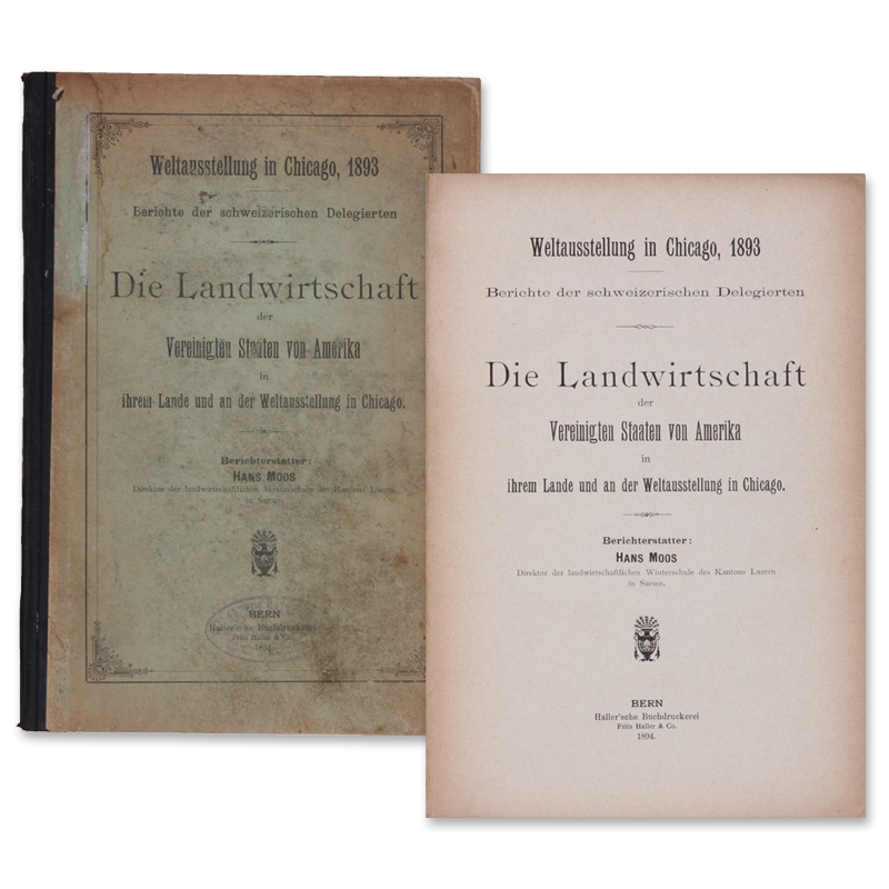 Bern, Haller, 1894. (22 x 15 cm). 180 S. Original-Halbleinwandband. (Weltausstellung in Chicago, 1893. Berichte der schweiz. [...]