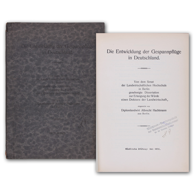 Die Entwicklung der Gespannpflüge in Deutschland. Dissertation.