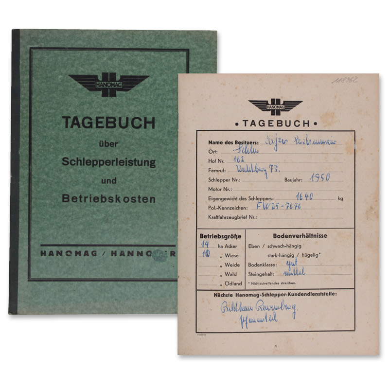 Tagebuch über Schlepperleistung und Betriebskosten.