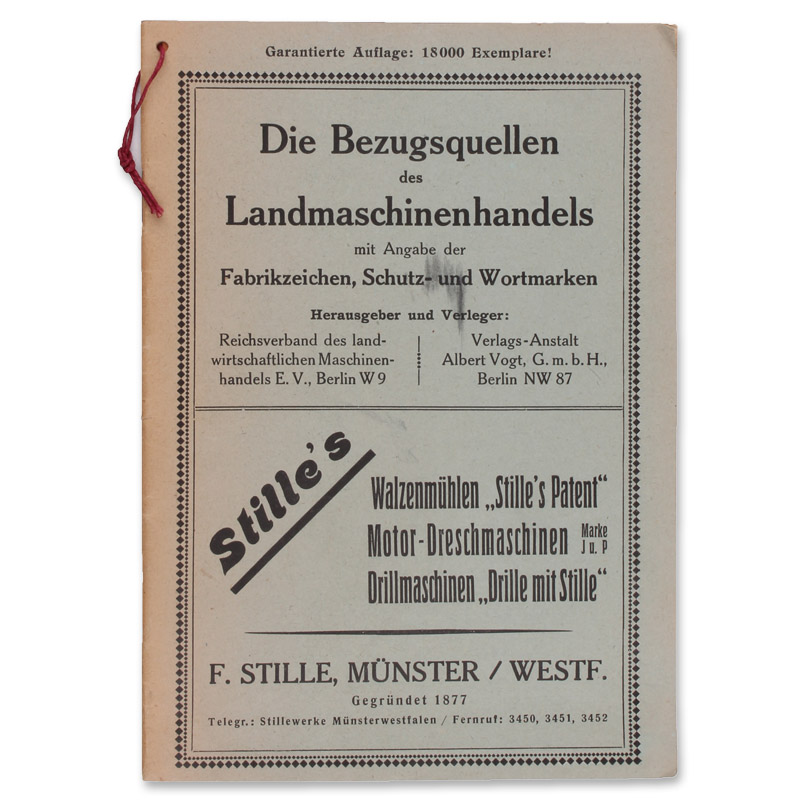 Die Bezugsquellen des Landmaaschinenhandels mit Angaben der Fabrikzeichen, Schutz- und Wortmarken.