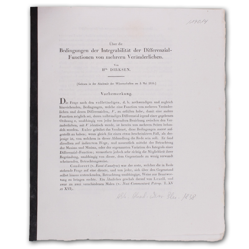 (Berlin, 1838). (27,5 x 23 cm). SS. (79)-98. Rückenbroschur, unaufgeschnitten. (Aus: Abh. der k. Akad. der Wiss.).