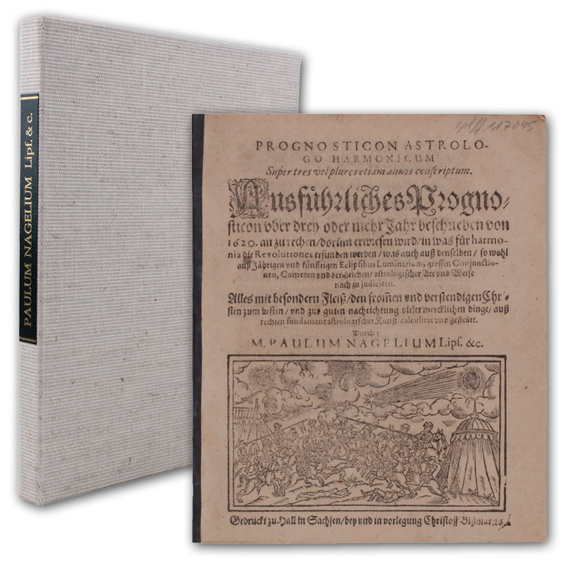 Prognosticon astrologo-harmonicum super tres vel plures etiam annos conscriptum. Ausführliches Prognosticon uber drey oder mehr Jahr beschrieben von 1620. an zu rechen, dorinn erwiesen wird, in was für harmonia die Revolutiones erfunden werden, was auch auß denselben, so wohl auß Jährigen und künfftigen Eclipsibus luminarium, grossen Conjunctionen, Cometen und dergleichen, astrologischer Art und Weise nach zu judiciren.