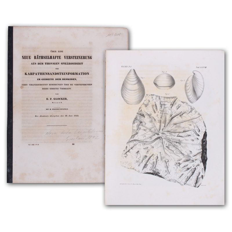 (Breslau, Weber, 1842). (30,5 x 23 cm). SS. (673)-700. Mit 2 lithographierten Tafeln. Rückenbroschur, unaufgeschnitten. (Aus: [...]