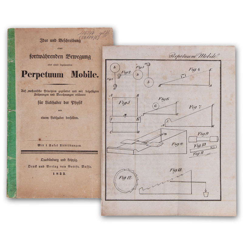 Bewegung oder eines sogenannten Perpetuum Mobile. Auf mechanische Principien gegründet und mit beigefügten Zeichnungen und Berechnungen erläutert für Liebhaber der Physik von einem Liebhaber derselben.