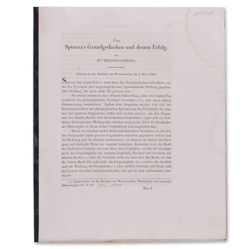 Über Spinoza's Grundgedanken und dessen Erfolg.
