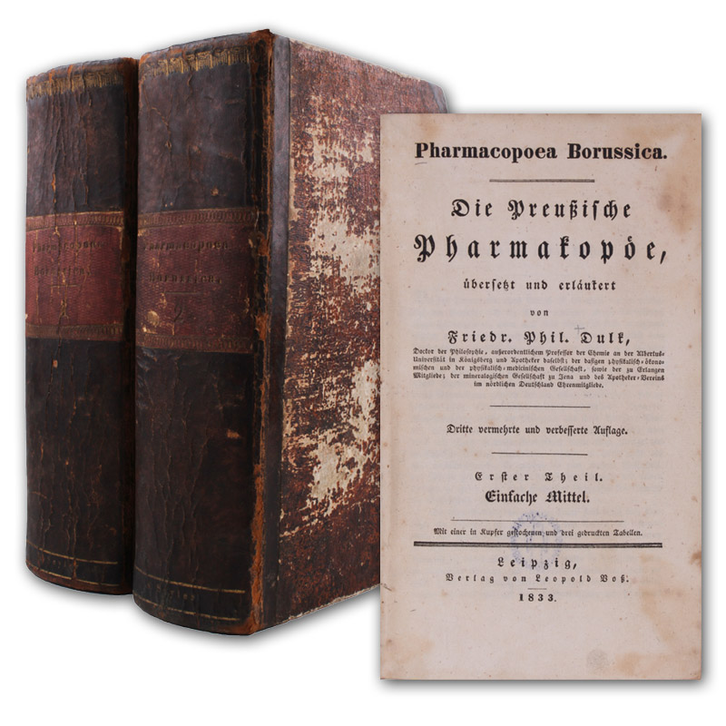 Die Preußische Pharmakopöe, übersetzt und erläutert von Friedr. Phil. Dulk. 2. vermehrte und verbesserte Auflage. 2 Bände.
