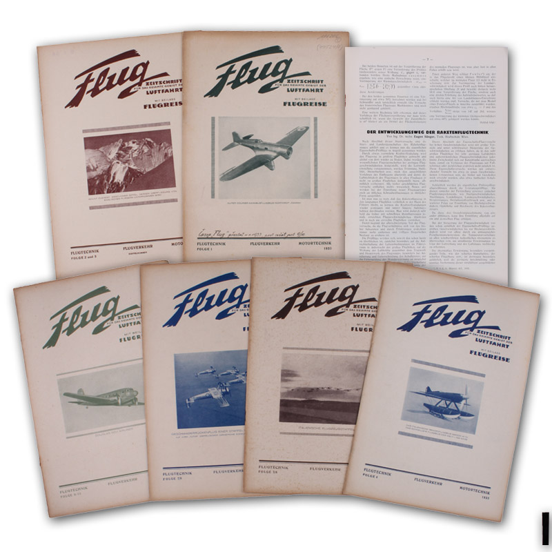 Die Entwicklung der Raketenflugtechnik. 8 S. In: Flug. Zeitschrift für das gesamte Gebiet der Luftfahrt. Jg. 1933 in 6 Heften (so komplett).