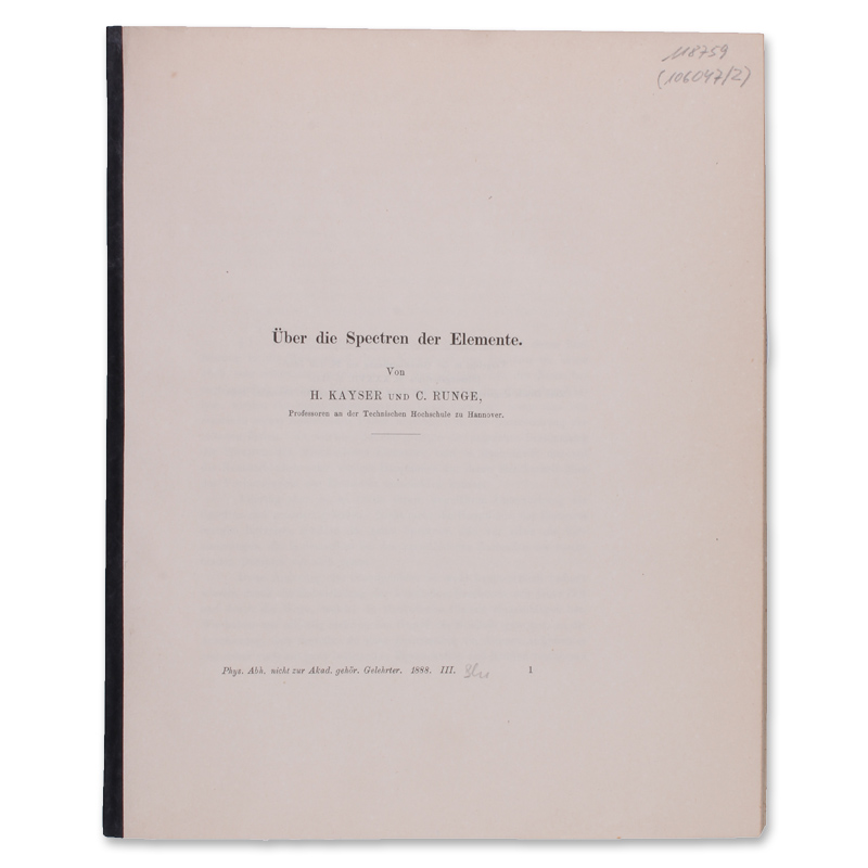 Ueber die Spectra einiger chemischen Elemente. SS. 275-295 und 621-623. Mit 2 Tafeln und 4 Tabellen. In: Annalen der Physik und Chemie. Band 124.