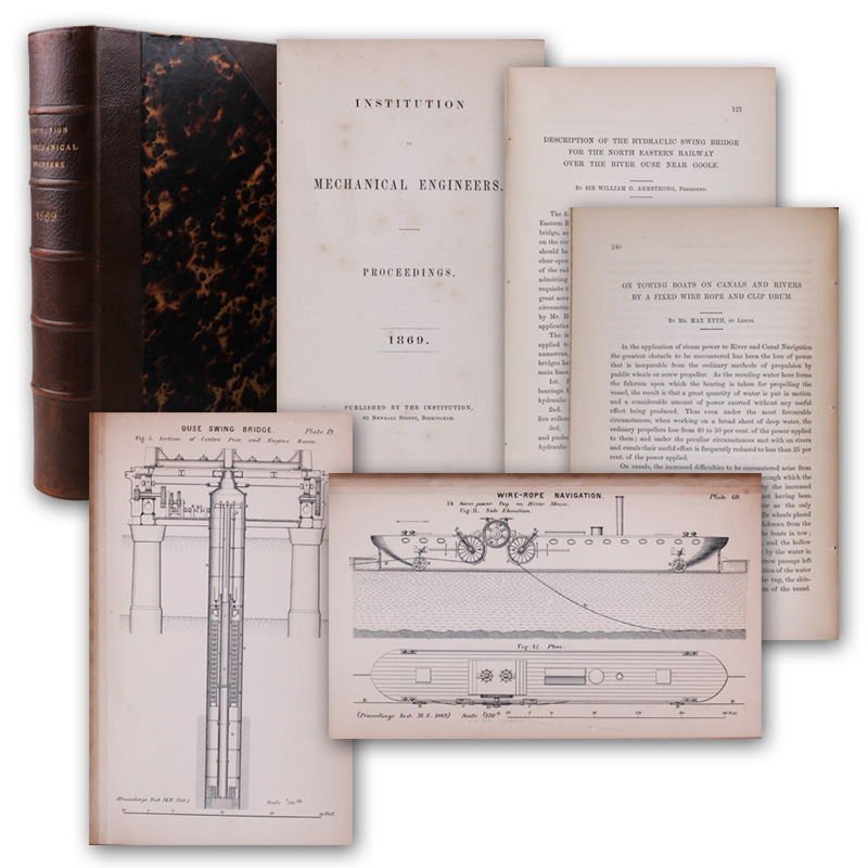 On towing boats on canals and rivers by a fixed wire rope and clip drum. SS. 240-274. Mit 9 Tafeln. - Und: William G. Armstrong. Description of the hydraulic swing brigde for the North Eastern Railway over the river Ouse near Goole. SS. 121-132. Mit 8 Tafeln. In: Proceedings of the Institution of Mechanical Engineers.