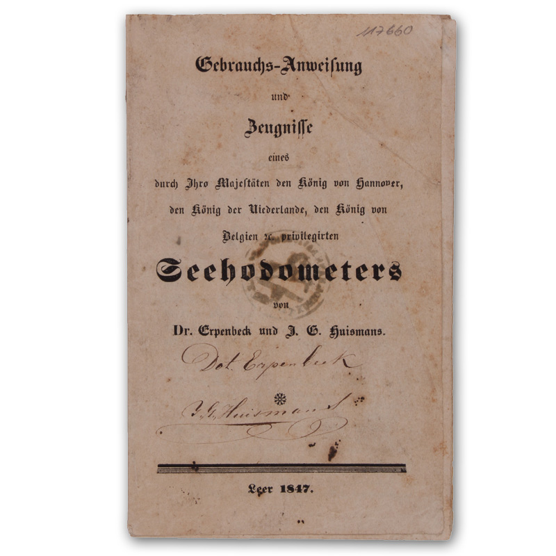 Gebrauchs-Anweisung und Zeugnisse eines durch Ihro Majestäten den König von Hannover, den König der Niederlande, den König von Belgien etc. privilegirten Seehodometers.