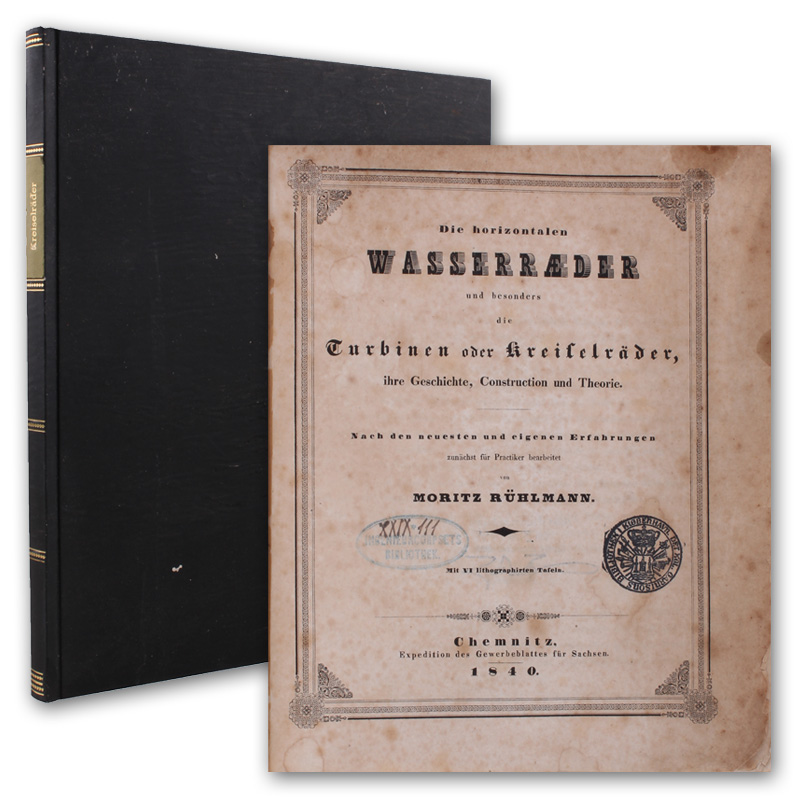 Die horizontalen Wasserraeder und besonders die Turbinen oder Kreiselräder, ihre Geschichte, Construction und Theorie.