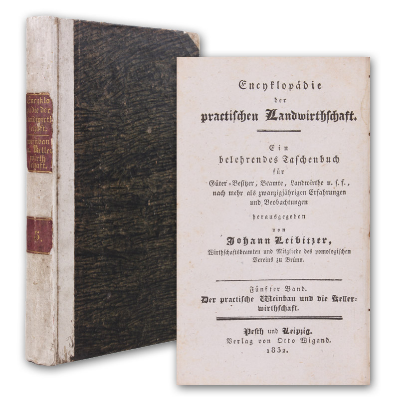 Pest und Leipzig, Wiegand, 1832. (16,5 x 10 cm). 212 S. Halbpergamentband der Zeit. (Encyklopädie der practischen Landwirthschaft).