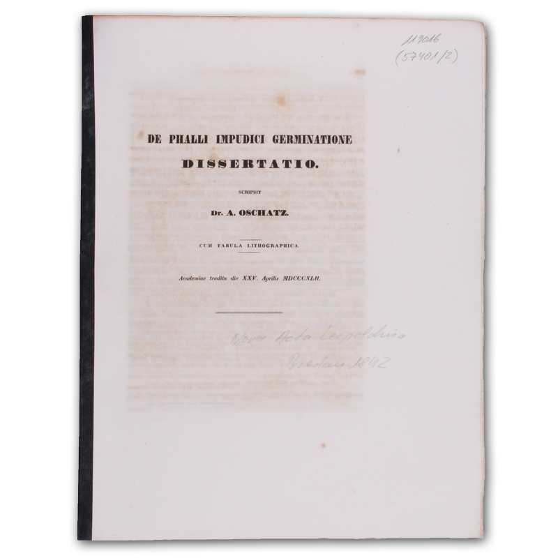 (Breslau und Bonn, Weber, 1854). (30,5 x 24 cm). 32 S. Mit 1 lithographierten Tafel. Rückenbroschur, unbeschnitten. (Aus: Nova Acta [...]