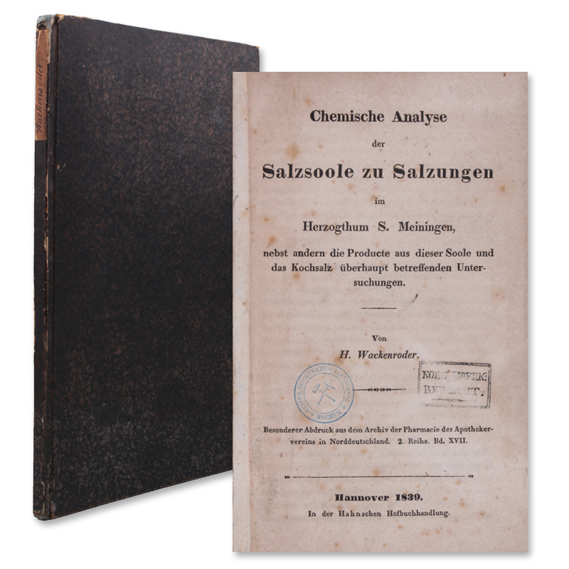 Hannover, Hahn, 1839. (19,5 x 12,5 cm). 52 S. Pappband der Zeit. (Sonderdruck aus: Archiv der Pharmacie...).