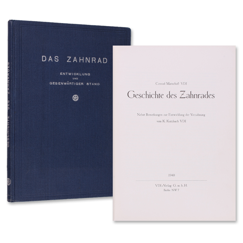 Berlin, VDI, 1940. (25 x 18 cm). (8) 132 S. Mit 22 Abbildungen. Original-Leinwandband. (Das Zahnrad. Entwicklung und gegenwärtiger [...]