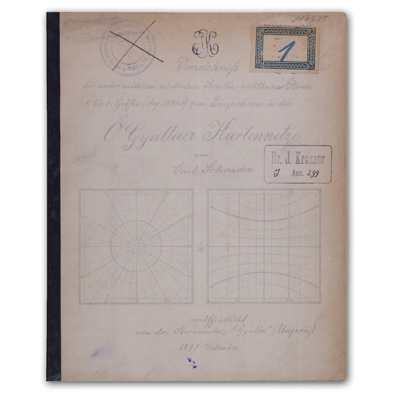 Ógyalla, Sternwarte Ógyalla, 1877. (21 x 17 cm). 20 S. Mit 4 Abbildungen. Rückenbroschur.
