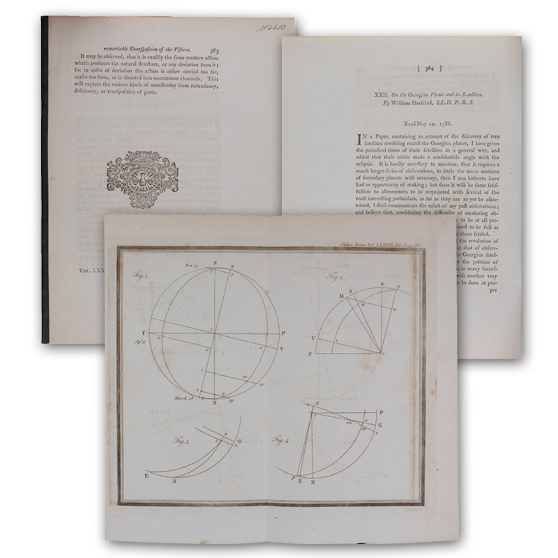 (London, 1788). (27 x 21 cm). SS. 364-378. Mit 1 gefalteten Kupfertafel. Rückenbroschur. (Aus:Philosophical Transactions).