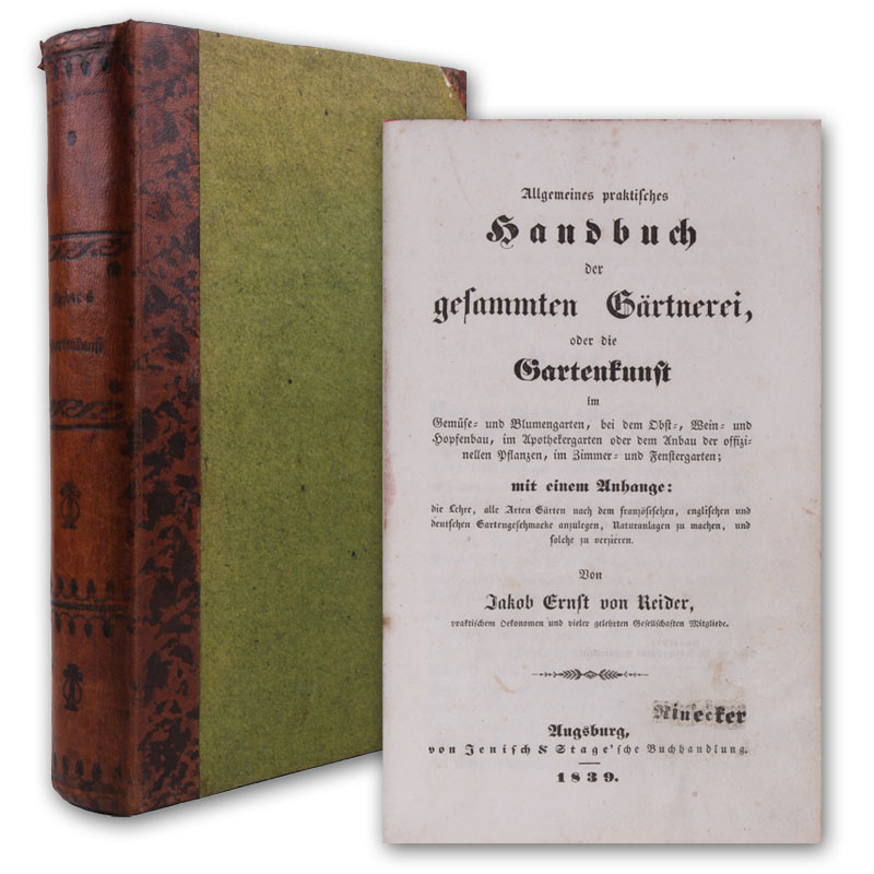 Stuttgart, Hoffmann, 1853. (20,5 x 13 cm). VI, 154 S. Mit 32 kolorierten lithographierten Gartenplänen auf 26 Tafeln, davon 12 [...]