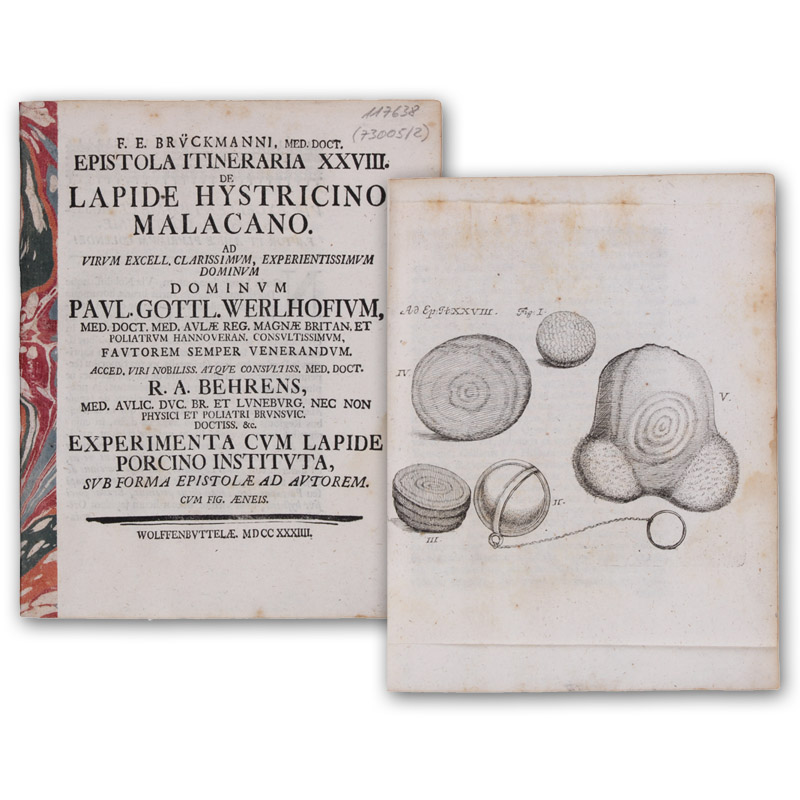 De lapide hystricino Malacano. Accedit: R(udolph) A(ugustin) Behrens. Experimenta cum lapide porcino instituta, sub forma epistolae ad autorem.