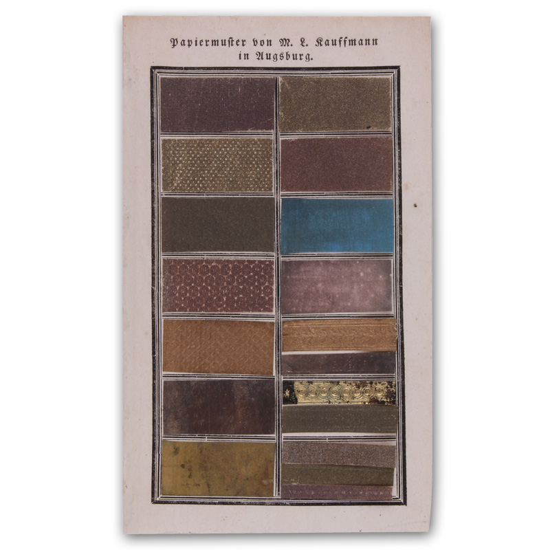 Augsburg, (Ca. 1770). (20 5 x 12,5 cm). 1 Blatt. Mit 18 montierten, teils geprägten, Buntpapieren.