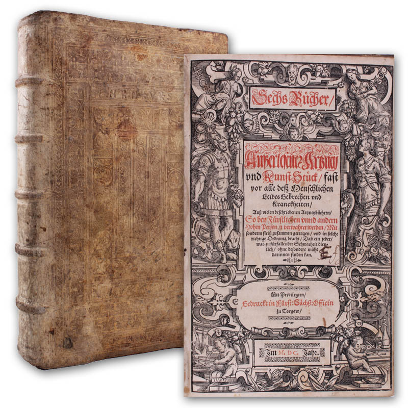 Sechs Bücher, Außerlesene Artzney und Kunst Stück, fast vor alle deß Menschlichen Leibes Gebrechen und Kranckheiten. Auß vielen beschriebenen Artzneybüchern, So bey Fürstlichen unnd andern Hohen Personen verwahret werden. Mit sonderm fleiß zusammen getragen, und in solche richtige Ordnung bracht...