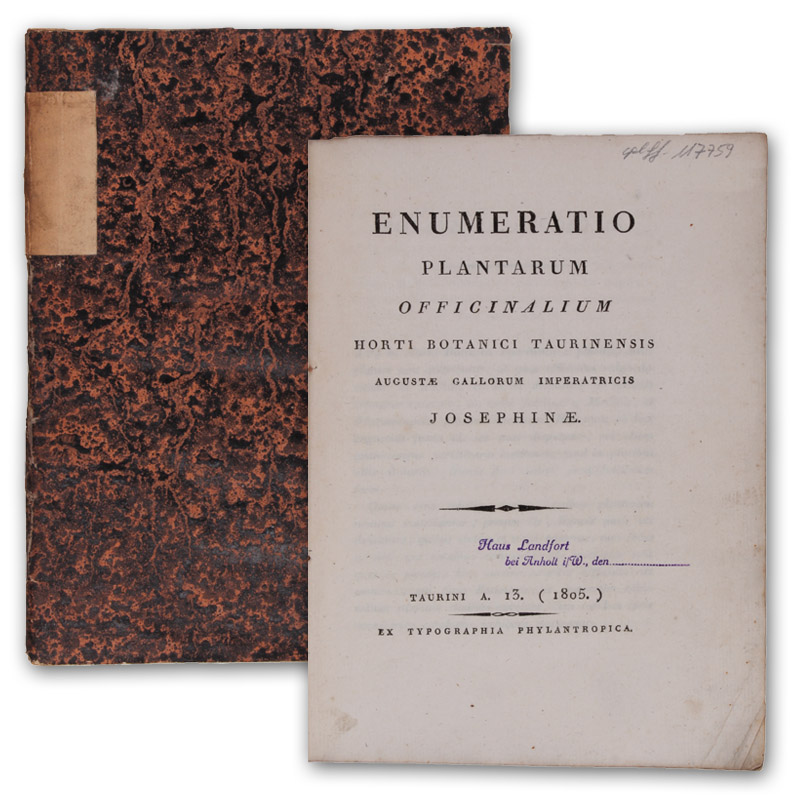Enumeratio plantarum officinalium horti botanici Taurinensis Augustae Gallorum Imperaticis Josephinae.