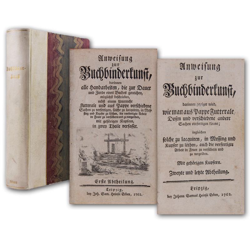 darinnen alle Handarbeiten, die zur Dauer und Zierde eines Buches gereichen... nebst einem Unterricht Futterale und aus Pappe verschiedene Sachen zu verfertigen. 2 Teile in 1 Band.