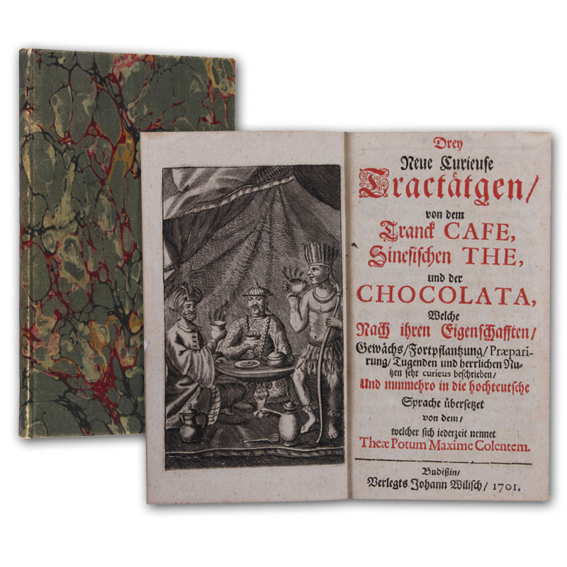 Drey neue curieuse Tractätgen von dem Tranck Cafe, Sinesischen Thee, und der Chocolata, welche nach ihren Eigenschafften, Gewächs, Fortpflantzung, Praeparirung, Tugenden und herrlichen Nutzen sehr curieus beschrieben, und nunmehro in die hochteutsche Sprache übersetzet.