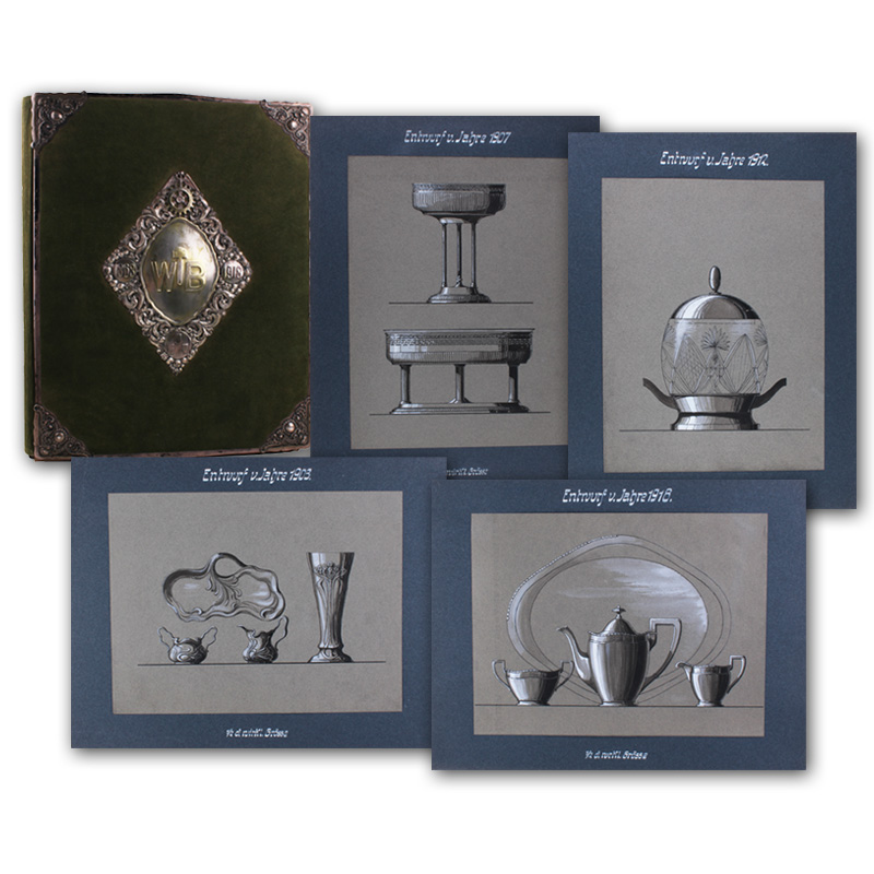 Prachtvolle Mappe anlässlich des 50-jährigen Firmenjubiläums der Firma Wilhelm Binder in Schwäbisch Gmünd.