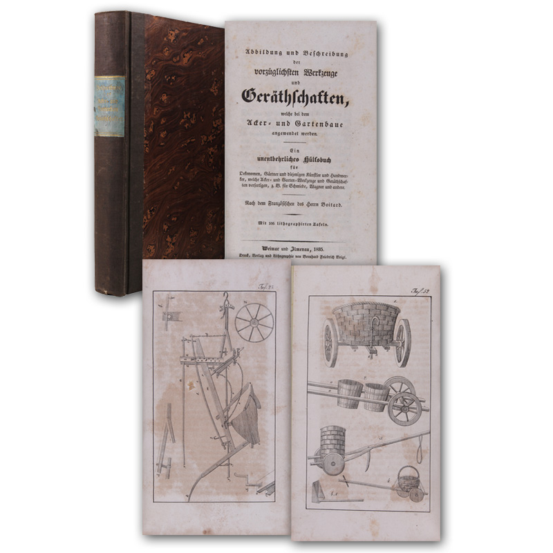 Weimar, Landes-Industrie-Comptoir, 1829. (25 x 21 cm). IV, 64 S. Mit 11 mehrfach gefalteten lithographierten Tafeln. Halblederband der Zeit.