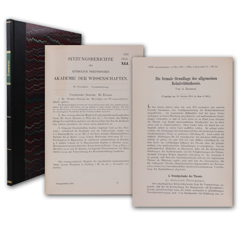 Die formale Grundlage der allgemeinen Relativitätstheorie. SS. 1030-1085. In: Sitzungsberichte der preuss. Akademie der Wissenschaften. Jg. 1914. Heft 41.