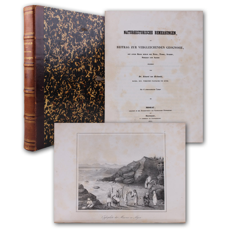 Moskau bzw. Stuttgart, Kaiserliche Universität bzw. Schweizerbart, 1851. (30 x 23 cm). (6) 464 (1) S. Mit 4 lithographierten Tafeln. Halblederband der Zeit. (Nouveaux Mémoires [...]
