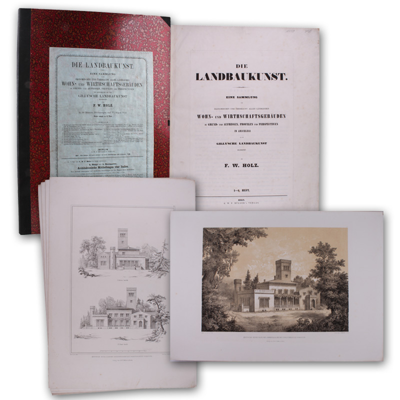 Die Landbaukunst. Eine Sammlung von ökonomischen und überhaupt allen ländlichen Wohn- und Wirthschaftsgebäuden in Grund- und Aufrissen, Profilen und Perspectiven in Anschluss an die Gilly'sche Landbaukunst bearbeitet. Hefte 1-6 (alles Erschienene).
